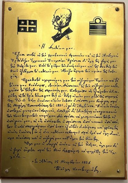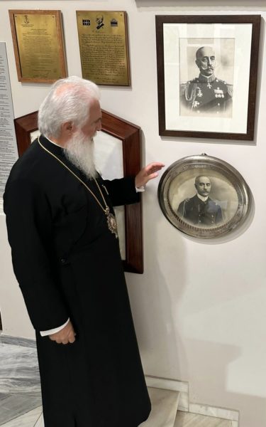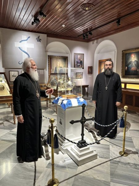 Ο Σεβασμιώτατος εντυπωσιάστηκε κυρίως απο την Λήκυθο που περιέχει ταριχευμένη την ηρωική καρδιά του Αρχιναυάρχου του Αγώνος Ανδρέα Μιαούλη (αφιέρωμα Ιερό του Βασιλέως Όθωνος και Βαυαρική συνήθεια της εποχής) και από την διαθήκη του ελευθερωτού του Αιγαίου Πελάγους, Παύλου Κουντουριώτου, του και πρώτου Προέδρου της Ελληνικής Δημοκρατίας.