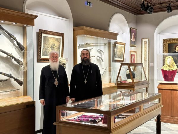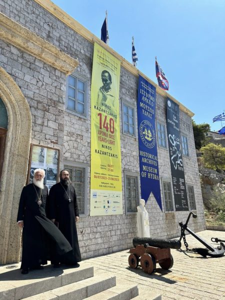 Ο Σεβασμιώτατος Μητροπολίτης Λήμνου και Αγίου Ευστρατίου κ. Ιερόθεος, συνοδευόμενος υπό του Πανοσιολ. Πρωτοσυγκέλλου της Ιεράς Μητροπόλεώς του Αρχιμ. π. Ιερωνύμου Σχίζα, με αφορμή την συμμετοχή του στις λατρευτικές εκδηλώσεις των Θεομητορικών εορτασμών 2023 στην αγιοτόκο και ηρωοτόκο Ύδρα, η οποία εύστοχα έχει χαρακτηριστεί, ως ναυαρχείο του αγώνος, επισκέφθηκε το Ιστορικό Αρχείο – Μουσείο Ύδρας και ξεναγήθηκε στους χώρους αυτού από τον Πανοσιολ. Πρωτοσύγκελλο, Αρχιμ. π. Νεκτάριο Δαρδανό, απόφοιτο και του τμήματος Ιστορίας και Αρχαιολογίας του ΕΚΠΑ.