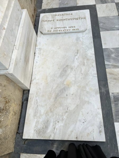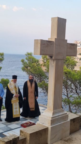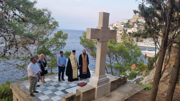 Παραμονή της εορτής της Παναγίας των Ναυμάχων, 22 Αυγούστου, ημέρα της κοιμήσεως του ενδόξου Ναυάρχου Παύλου Κουντουριώτου, ο Σεβ. Λήμνου μετά των Πανοσιολ. Πρωτοσυγκέλλου του, Γενικού Αρχιερατικού Επιτρόπου Ύδρας, Δημάρχου Ύδρας κ. Γεωργίου Κουκουδάκη, Προέδρου του Δημοτικού Συμβουλίου, Αντιδημάρχου και άλλων Δημοτικών Συμβούλων μετέβησαν στον τάφο και ετέλεσε τρισάγιον δια την ανάπαυσιν της ψυχής του Κυβερνήτου του θρυλικού πλοίου «Aβέρωφ».