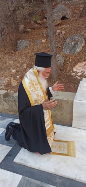 Ο Σεβασμιώτατος Μητροπολίτης Λήμνου κ. Ιερόθεος, ένδακρυς και με βαθύτατο σεβασμό, γονάτισε και ασπάσθηκε τον τάφο του Ναυάρχου Παύλου, καταθέτοντας την ανεξόφλητη ευγνωμοσύνη του Λημνιακού λαού, του οποίου την νήσο απελευθέρωσε στις 8 Οκτωβρίου του 1912.