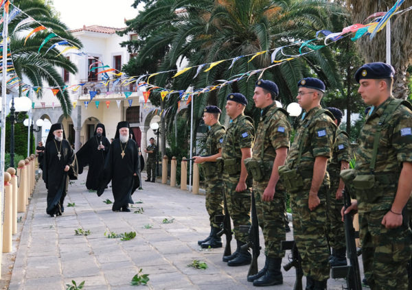 Προ του πέρατος της ακολουθίας του Εσπερινού, ακολούθησε πάνδημος λιτάνευση της εφεστίου ιεράς Εικόνος της Αγίας Τριάδος. Ο Ιερός Κλήρος, οι τοπικές αρχές και ο πιστός λαός της νήσου ακολούθησαν την ιερά πομπή, ενώ στρατιωτικό άγημα και η φιλαρμονική απέδωσαν τιμές.