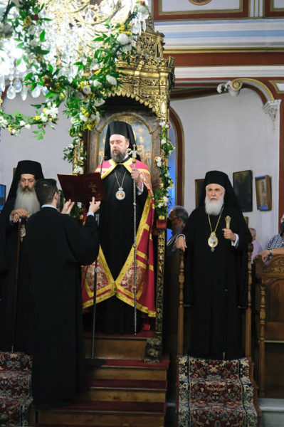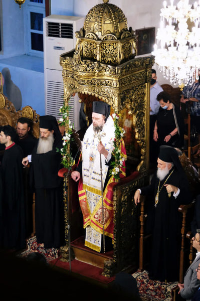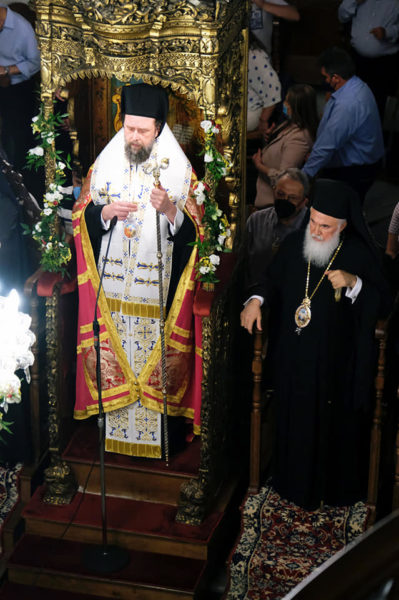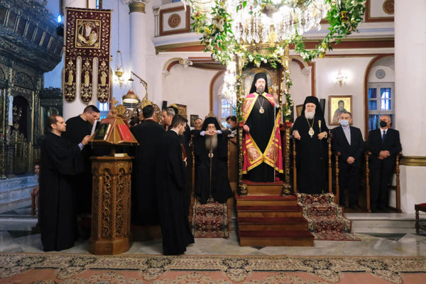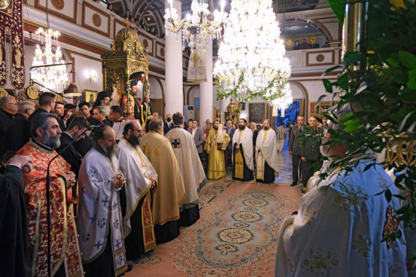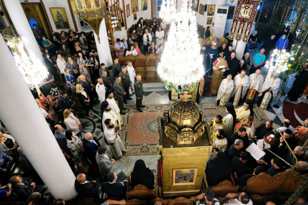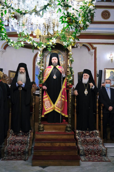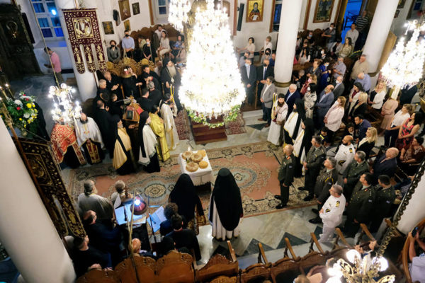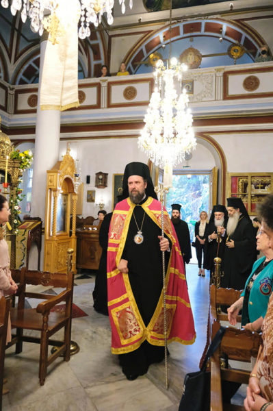 Της ιεράς ακολουθίας προεξήρχε ο Αρχιγραμματέας της Ιεράς Συνόδου της Εκκλησίας της Ελλάδος, Θεοφιλέστατος Επίσκοπος Ωρεών κ. Φιλόθεος, ενώ συγχοροστάτησαν ο Σεβ. Μητροπολίτης Φθιώτιδος κ. Συμεών και ο Σεβ. Μητροπολίτης Λήμνου και Αγίου Ευστρατίου κ. Ιερόθεος.