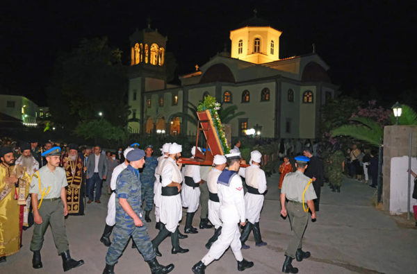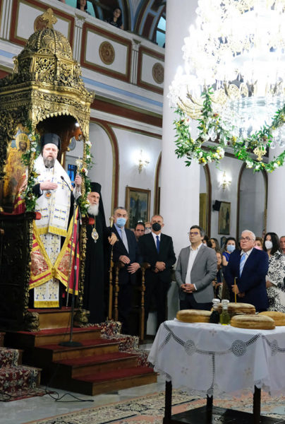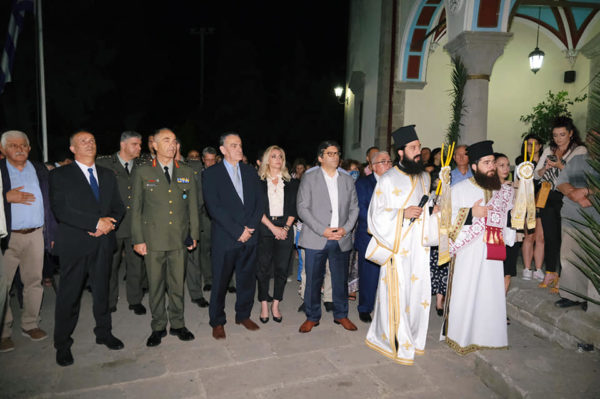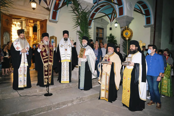 Προ του πέρατος της ακολουθίας του Εσπερινού, ακολούθησε πάνδημος λιτάνευση της εφεστίου ιεράς Εικόνος της Αγίας Τριάδος. Ο Ιερός Κλήρος, οι τοπικές αρχές και ο πιστός λαός της νήσου ακολούθησαν την ιερά πομπή, ενώ στρατιωτικό άγημα και η φιλαρμονική απέδωσαν τιμές.