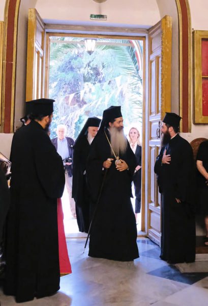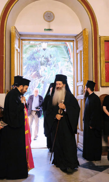 Προ της απολύσεως του Εσπερινού, ο Σεβ. Μητροπολίτης Λήμνου και Αγίου Ευστρατίου κ. Ιερόθεος, καλωσόρισε με εγκάρδιους λόγους τους φιλοξενούμενους Αρχιερείς, οι οποίοι με την εκλεκτή συνοδεία τους ήρθαν στο νησί της Λήμνου. Τους ευχαρίστησε που με χαρά ανταποκρίθηκαν στο αδελφικό κάλεσμα του, προσερχόμενοι ως συνεορταστές στην Πανήγυρη της τοπικής Εκκλησίας.
