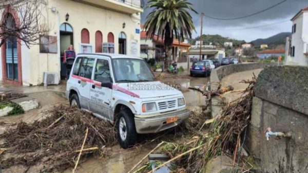 Στο έλεος της κακοκαιρίας η Λήμνος: Πλημμυρισμένοι δρόμοι και σοβαρές ζημιές – Ήχησε το 112