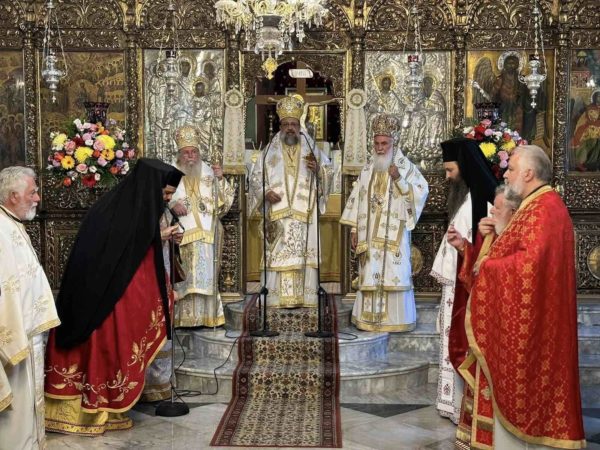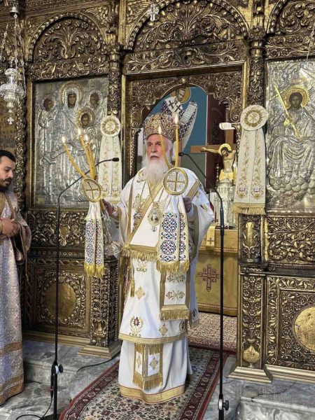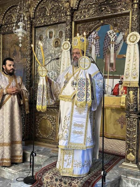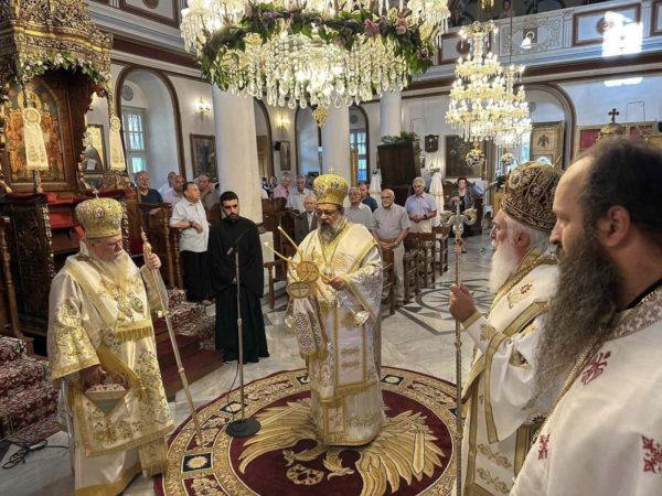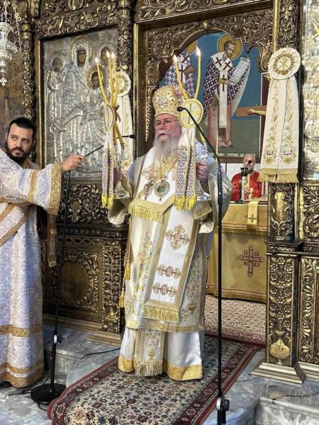 Ευχαρίστησε, ακόμη, τους παρισταμένους και συμπροσευχομένους πολιτικούς και στρατιωτικούς άρχοντες του Τόπου, τα Σώματα Ασφαλείας, τους εκπροσώπους κάθε άλλης Αρχής, φορέων και συλλόγων, τους νέους Ιεροψάλτες και επήνεσε τον ευγενή και πιστό λαό της νήσου μας για την αθρόα συμμετοχή και την ευλαβική παρουσία του στην πανήγυρη της καθέδρας της Ιεράς Μητροπόλεως, εκφράζοντας την ευχή να γίνει αυτή η ποθητή ενότητα χαρακτηριστικό γνώρισμα της ζωής της Εκκλησίας στον διηρημένο κόσμο και στην σκοπίμως αποπροσανατολιζόμενη από αυτή την αγία κατεύθυνση κοινωνία.