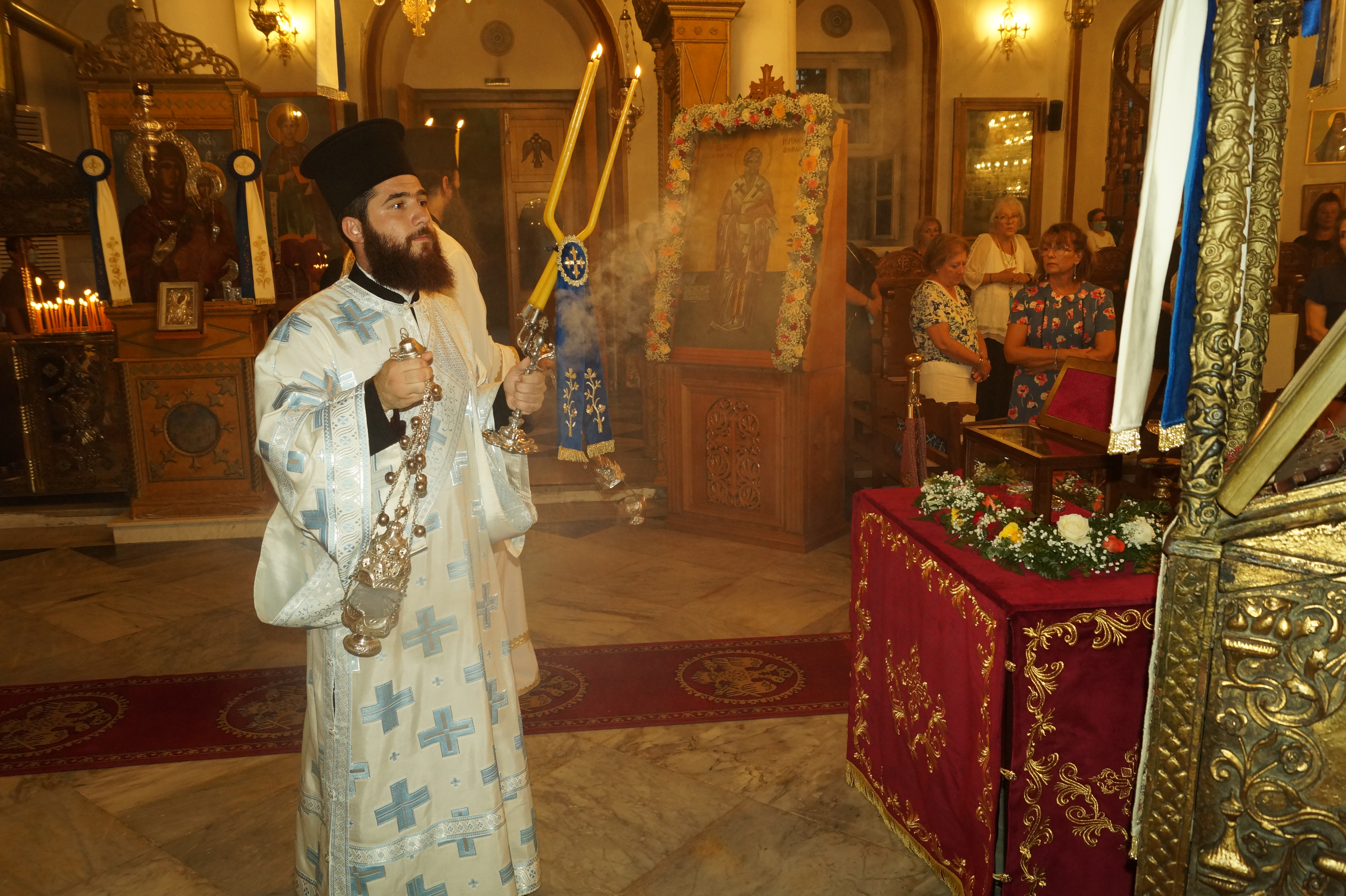 Το Σάββατο τελέσθηκε ο Εσπερινός της εορτής στον Ιερό Μητροπολιτικό Ναό Αγίας Τριάδος Μυρίνης, προεξάρχοντος του ερτάζοντος Ιεράρχου, πλαισιούμενος από όλο τον Ιερό Κλήρο του νησιού και άλλους κληρικούς.Τον θείο Λόγο κήρυξε ο Παν/τος Αρχιμ.Νικάνωρ Καραγιάννης, ιεροκήρυξ της Ι.Μητροπόλεως Κηφισίας.Στο τέλος της ακολουθίας ευχαρίστησε τον συμπροσευχόμενο Σεβ. Μητροπολίτη Μεσογαίας και Λαυρεωτικής κο Νικόλαο, ο Σεβ. Ιερόθεος καθώς και το ευάριθμο εκκλησίασμα.