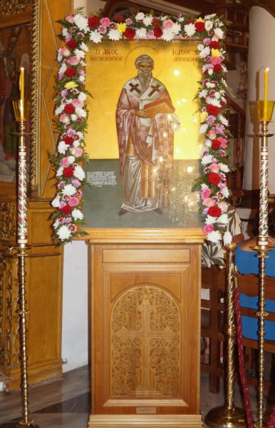 Τέλος, εξέφρασε αισθήματα βαθύτατης αγάπης και ευγνωμοσύνης προς όλους τους πιστούς, που προσήλθαν στη λατρευτική αυτή σύναξη, αισθανόμενοι την ανάγκη να τιμήσουν τον Άγιο Ιερόθεο και να είναι προσευχητικά παρόντες στην εορτή και τη χαρά του πνευματικού πατέρα τους.