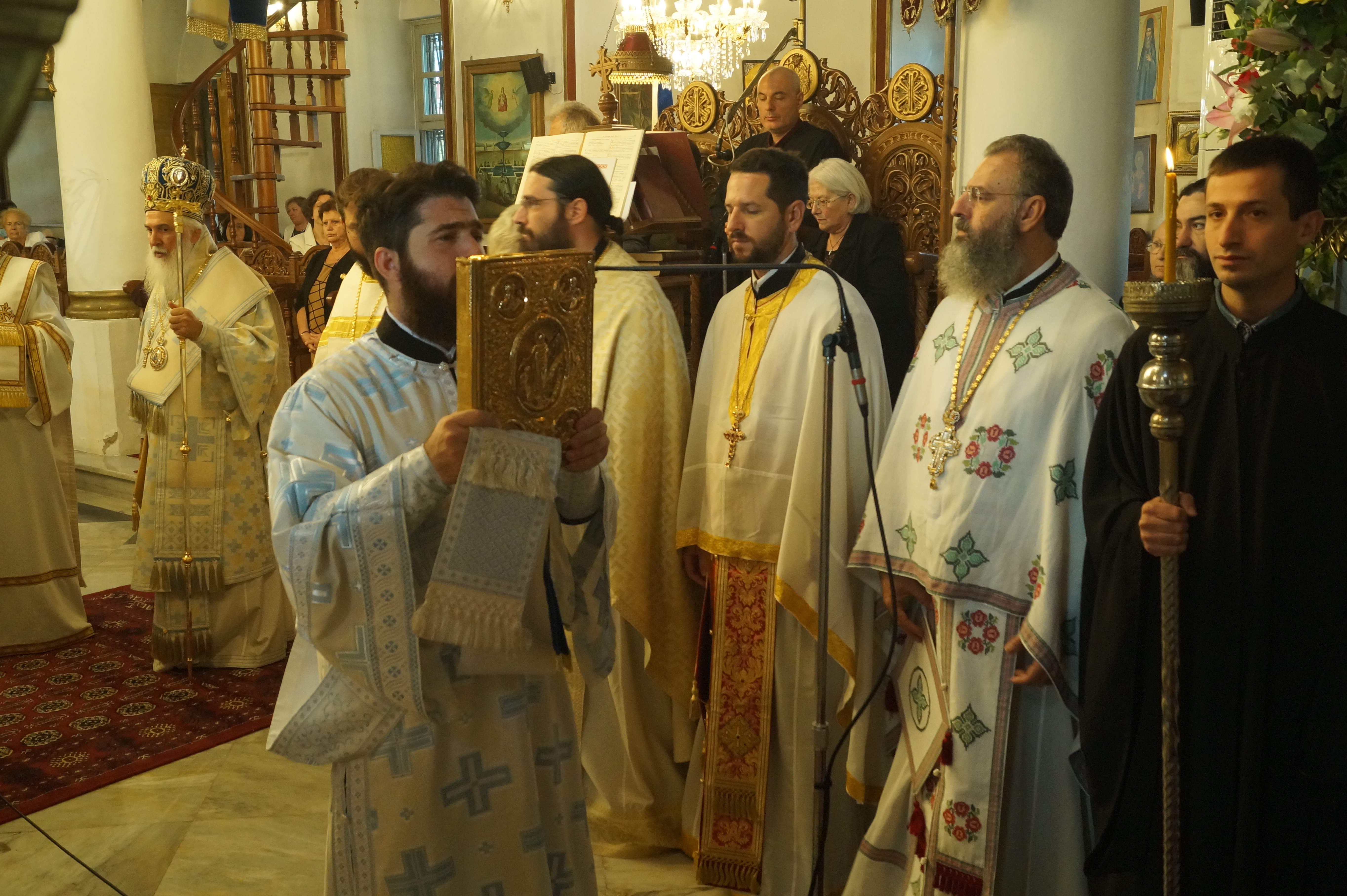 Το Σάββατο τελέσθηκε ο Εσπερινός της εορτής στον Ιερό Μητροπολιτικό Ναό Αγίας Τριάδος Μυρίνης, προεξάρχοντος του ερτάζοντος Ιεράρχου, πλαισιούμενος από όλο τον Ιερό Κλήρο του νησιού και άλλους κληρικούς.Τον θείο Λόγο κήρυξε ο Παν/τος Αρχιμ.Νικάνωρ Καραγιάννης, ιεροκήρυξ της Ι.Μητροπόλεως Κηφισίας.Στο τέλος της ακολουθίας ευχαρίστησε τον συμπροσευχόμενο Σεβ. Μητροπολίτη Μεσογαίας και Λαυρεωτικής κο Νικόλαο, ο Σεβ. Ιερόθεος καθώς και το ευάριθμο εκκλησίασμα.