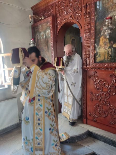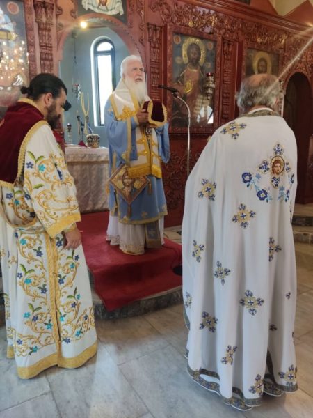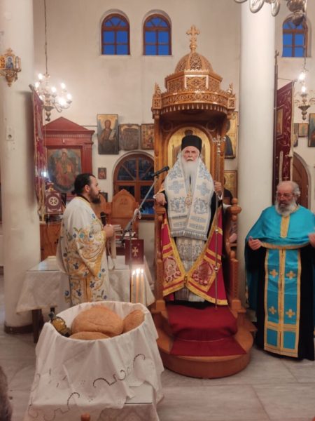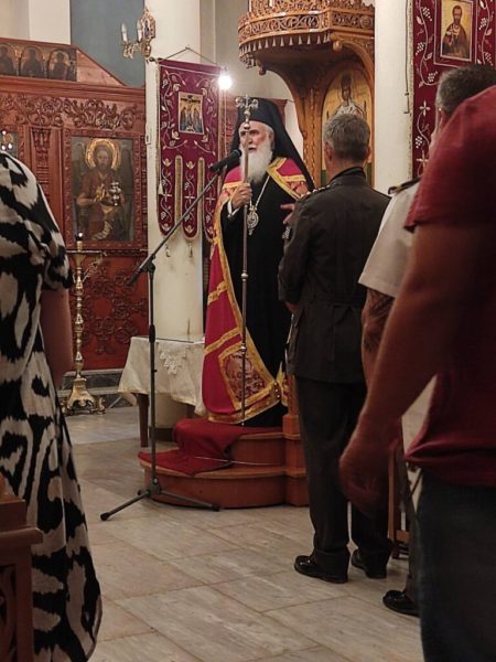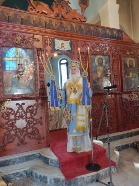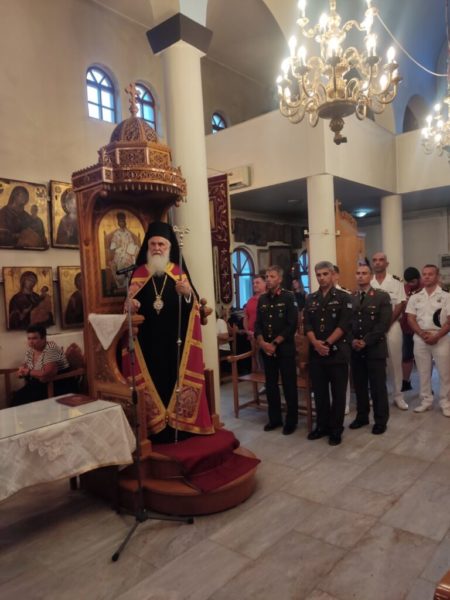 Κατά την παραμονή του στο νησί ο Σεβ. ετέλεσε τον πανηγυρικό εσπερινό της Δεσποτικής εορτής με την συμπροσευχη-τική παρουσία των πολιτικών, στρατιωτικών αρχών και των Σωμάτων Ασφαλείας και με την πηγαία συμμετοχή των πιστών. Απευθύνοντας λόγο πνευματικής οικοδομής στους κατοίκους και στους καλοκαιρινούς επισκέπτες του νησιού που εκκλησιάστηκαν, μίλησε για την ανάγκη μεταμορφώσεως του χαρακτήρα μας και της ποιότητάς του, ώστε με τη χάρη του Θεού να αλλάξει η ζωή και η κοινωνία μας από την παραμορφωμένη και αλλοιωμένη εικόνα που παρουσιάζει.