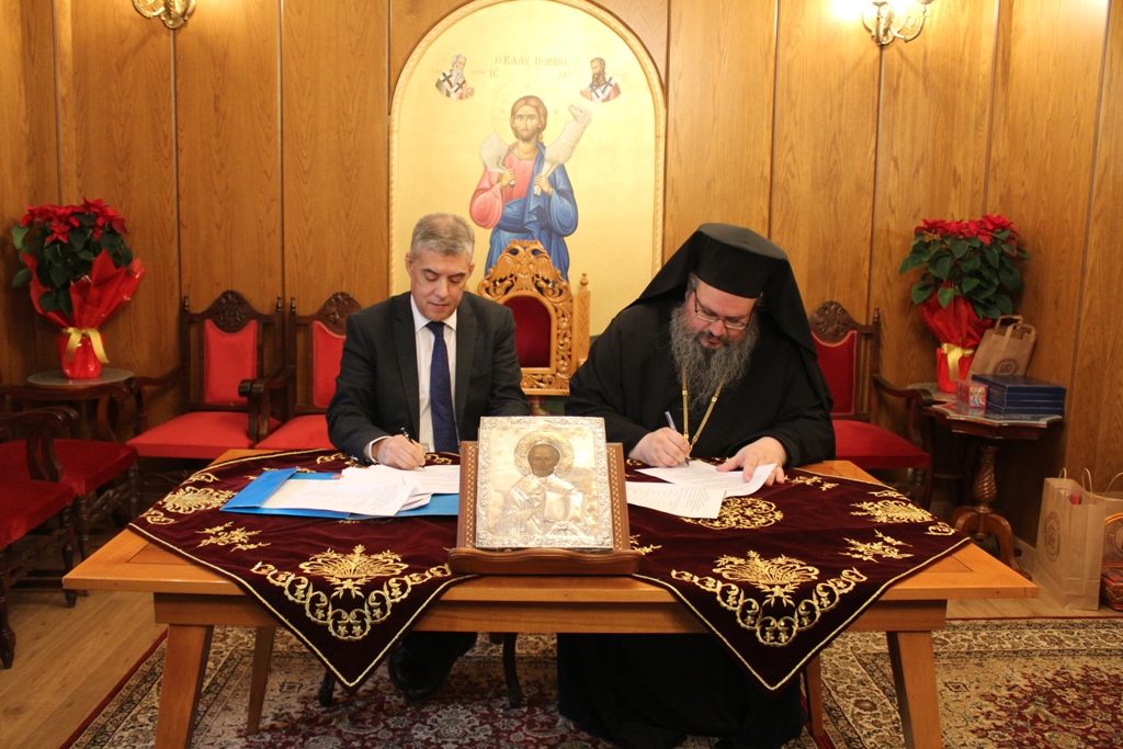 Την προγραμματική σύμβαση, μεταξύ της Μητρόπολης Λαρίσης και Τυρνάβου και της Περιφέρειας Θεσσαλίας, για τη χρηματοδότηση και υλοποίηση του έργου «Στατική ενίσχυση δαπέδου ισογείου – οροφής υπογείου Ιερού Ναού Αγίου Νικολάου Λαρίσης – Τυρνάβου», συνολικού προϋπολογισμού 1,5 εκατ ευρώ, υπέγραψαν το μεσημέρι της Δευτέρας ο Σεβασμιότατος Μητροπολίτης Λαρίσης και Τυρνάβου κ. Ιερώνυμος και ο Περιφερειάρχης Θεσσαλίας Κώστας Αγοραστός.