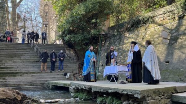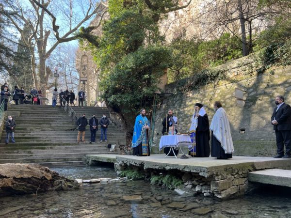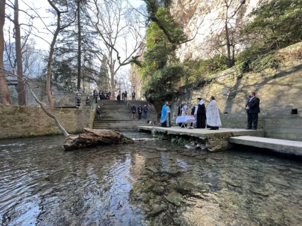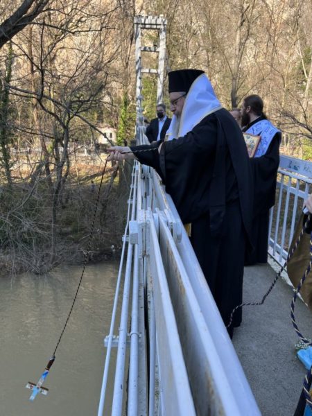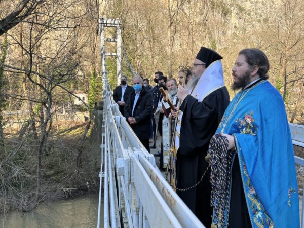 Παραμονή της Μεγάλης Δεσποτικής εορτής των Θεοφανείων, ο Σεβασμιώτατος Μητροπολίτης Λαρίσης και Τυρνάβου κ. Ιερώνυμος μετέβη στο Ιερό Προσκύνημα Αγίας Παρασκευής Τεμπών και τέλεσε τον Μεγάλο Αγιασμό έμπροσθεν του Ιερού Αγιάσματος και ακολούθως, ευλόγησε τα Ύδατα του ποταμού Πηνειού επί της εκεί κρεμαστής γέφυρας.