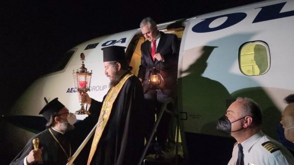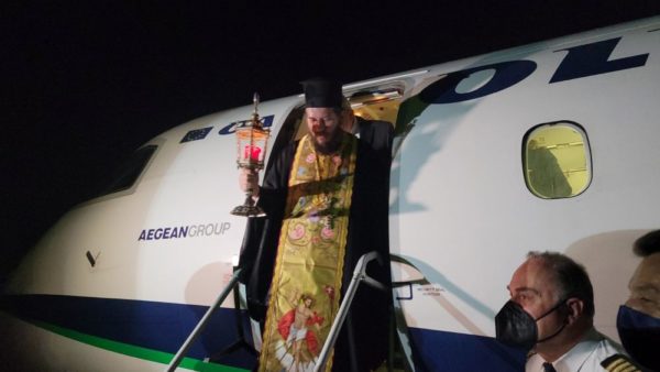 Λίγο νωρίτερα, το Άγιο Φως είχε φθάσει στη Λάρισα με πτήση των αερογραμμών Αιγαίου στην 110 Πτέρυγα Μάχης.