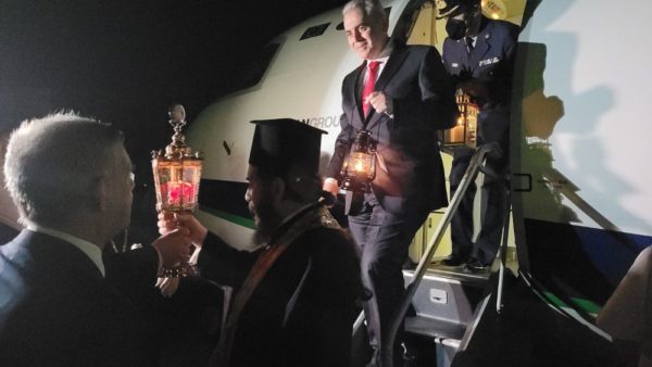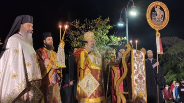 Ο Σεβασμιώτατος Μητροπολίτης Λαρίσης και Τυρνάβου κ. Ιερώνυμος υποδέχθηκε το Πανάγιο Φως εκ της Αγίας Πόλεως των Ιεροσολύμων, παρουσία της πολιτικής και στρατιωτικής ηγεσίας.