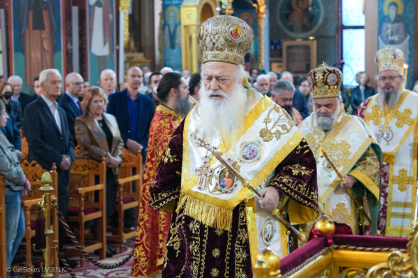 Πρωτίστως ὅμως πρεσβεύουν γιά τόν σεπτό Ποιμενάρχη σας, τόν Σεβασμιώτατο Μητροπολίτη Λαρίσης καί Τυρνάβου κ. Ἱερώνυμο, προσφιλῆ ἐν Χριστῷ ἀδελφό καί δραστήριο ἱεράρχη τῆς Ἐκκλησίας τῆς Ἑλλάδος, πρός τόν ὁποῖο θά ἤθελα νά ἐκφράσω αὐτή τήν ὥρα τίς θερμότατες εὐχαριστίες καί τήν εὐγνωμοσύνη μου γιά τήν εὐγενῆ, φιλάδελφο καί τιμητική πρόσκληση, τήν ὁποία ἀπηύθυνε πρός τήν ἐλαχιστότητά μου, γιά νά συμμετάσχω στή λαμπρά ἑορτή καί πανήγυρη τῆς Ἱερᾶς Μητροπόλεώς του, πρός τιμήν πάντων τῶν ἐν Λαρίσῃ διαλαμψάντων καί τῷ Θεῷ εὐαρεστησάντων ἁγίων, καί νά προεξάρχω στό σημερινό Ἀρχιερατικό Συλλείτουργο.