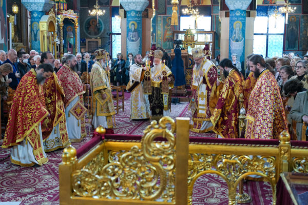 Προεξήρχε και κήρυξε το θείο Λόγο ο Σεβασμιώτατος Μητροπολίτης Βεροίας, Ναούσης και Καμπανίας κ. Παντελεήμων, ενώ συλλειτούργησαν ο Θεοφιλέστατος Επίσκοπος Ιππώνος κ. Στέφανος (Πατριαρχείο Αλεξανδρείας) καθώς και ο επιχώριος Σεβασμιώτατος Μητροπολίτης Λαρίσης και Τυρνάβου κ. Ιερώνυμος.