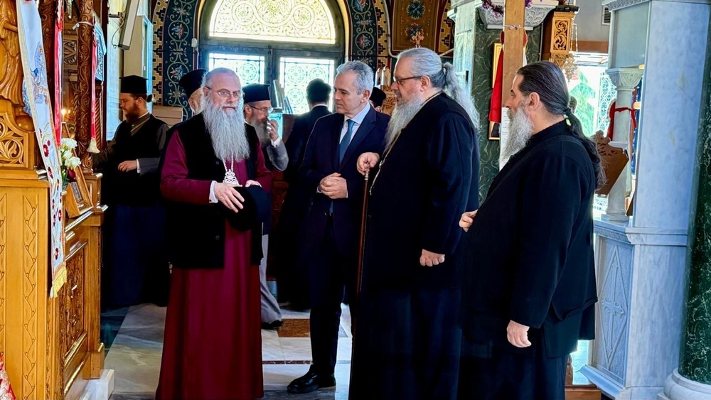 Τους υψηλούς προσκεκλημένους, αφού προσκύνησαν το Ιερό Λείψανο του Αγίου Αχιλλίου, ξενάγησε στον Ιερό Ναό και τους πέριξ χώρους, καθώς επίσης και στο Μητροπολιτικό Αρχονταρίκι, ο Σεβασμιώτατος Μητροπολίτης Λαρίσης και Τυρνάβου κ. Ιερώνυμος αναφερόμενος στην ιστορία της πόλης και του Ναού. Υπενθυμίζεται ότι το λείψανο του Αγίου Αχιλλίου είχε αφαιρεθεί από την πόλη της Λαρίσης το 969 από τον τσάρο των Βουλγάρων Σαμουήλ, ο οποίος όχι μόνο το λείψανο, αλλά και όλους τους Λαρισαίους συναπεκόμισε και εγκατέστησε στην περιοχή των Πρεσπών. Έτσι, ο Άγιος Αχίλλιος είναι ο Άγιος στο πρόσωπό του οποίου, Έλληνες και Βούλγαροι συναντώνται, καθώς αποτελεί ουσιαστικό τμήμα της ιστορίας των δύο λαών.