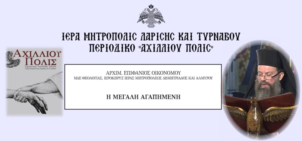 Άρθρο του Αρχιμ. Επιφανίου Οικονόμου, ΜΔΕ Θεολογίας, Ιεροκήρυκος της Ι.Μ. Δημητριάδος και Αλμυρού στην ΑΧΙΛΛΙΟΥ ΠΟΛΙΣ της Ιεράς Μητροπόλεως Λαρίσης και Τυρνάβου.