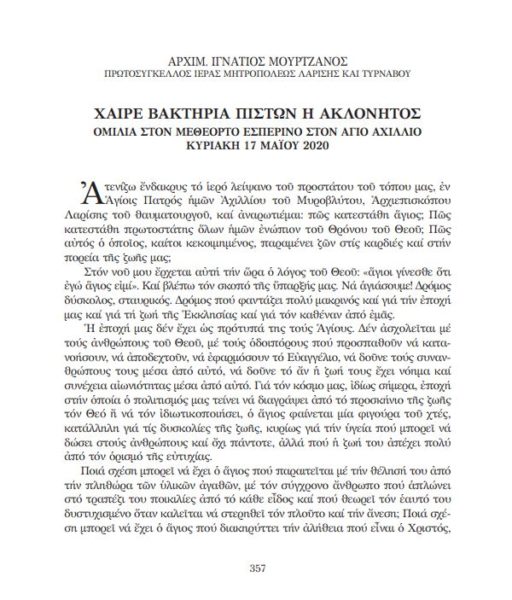 Ι.Μ. Λαρίσης και Τυρνάβου 17 Μαΐου, 2021 Aρχιμ. Ιγνάτιος Μουρτζανός: “Χαίρε Βακτηρία Πιστών Η Ακλόνητος” Διαδώστε: Άρθρο του Πανοσιολ. Αρχιμ. Ιγνατίου Μουρτζανού, Πρωτοσυγκέλλου της Ιεράς Μητροπόλεως Λαρίσης και Τυρνάβου στην περιοδική έκδοση ΑΧΙΛΛΙΟΥ ΠΟΛΙΣ. ΔΙΑΒΑΣΤΕ ΟΛΟΚΛΗΡΟ ΤΟ ΑΡΘΡΟ Διαδώστε: