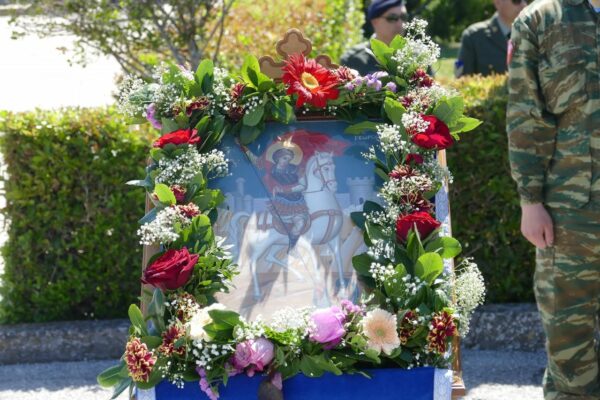 Εκδηλώσεις για τον εορτασμό της μνήμης του προστάτου του Στρατού Ξηράς, Μεγαλοµάρτυρος Αγίου Γεωργίου του Τροπαιοφόρου, πραγματοποιήθηκαν το πρωί της Παρασκευής στην έδρα της 1ης ΣΤΡΑΤΙΑΣ. Αρχικά τελέστηκε ∆οξολογία στον χώρο του Ηρώου του Στρατοπέδου, χοροστατούντος του Σεβασμιωτάτου Μητροπολίτου Λαρίσης και Τυρνάβου κ. Ιερωνύμου, αναγνώστηκε η Ηµερήσια ∆ιαταγή του Αρχηγού ΓΕΣ, ενώ ακολούθως, ο ∆ιοικητής της 1ης ΣΤΡΑΤΙΑΣ/EU-OHQ Αντιστράτηγος κ. Κωνσταντίνος Φλώρος κατέθεσε στεφάνι.