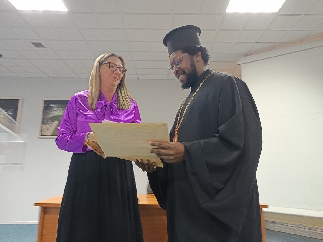 Στη συνέχεια ο Θεοφιλέστατος Επίσκοπος Τζίντζα και Ανατολικής Ουγκάντα κ. Σίλβεστρος, έλαβε το λόγο και μίλησε για την Ορθόδοξη Ιεραποστολή και το έργο της Επισκοπής του. Τόνισε την αγιαστική ιδιότητα του νερού τόσο κατά τον αγιασμό, όσο και κατά τη βάπτιση, αλλά και την ευλογία του να έχει πρόσβαση μια ολόκληρη περιοχή στο ύψιστο αυτό αγαθό.