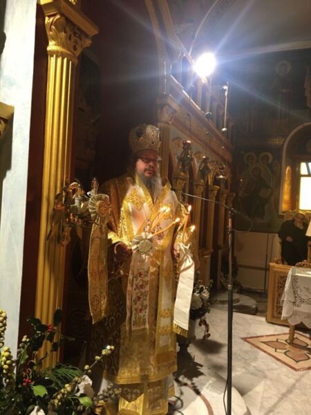 Προ της απολύσεως, ευχήθηκε σε όλους τους πιστούς ευλογημένα Χριστούγεννα και να έχουν την ευλογία του Αγίου Ελευθερίου στη ζωή τους, έναν Άγιο που τιμά ιδιαίτερα η κωμόπολη της Φαλάνης, ο πληθυσμός της οποίας είναι βλαχικής καταγωγής.