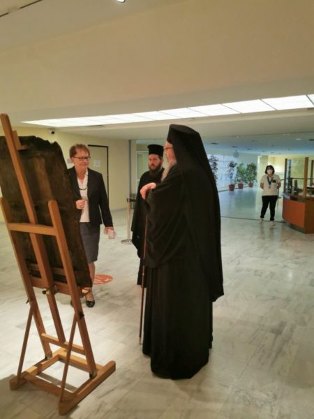 Η Προϊσταμένη της Βυζαντινής Εφορείας Αρχαιοτήτων κ. Σταυρούλα Σδρόλια έκανε μία εισαγωγική αναφορά στην όλη προσπάθεια, ευχαρίστησε την προϊσταμένη συντηρήτρια κ. Βασιλική Τούλη, καθώς και την υπεύθυνη-συντηρήτρια κ. Σταυρούλα Νάκου, ενώ ο σεπτός Ποιμενάρχης Λαρίσης και Τυρνάβου κ. Ιερώνυμος λαμβάνοντας τον λόγο τόνισε ότι τα κειμήλια είναι ο πολυτιμότερος θησαυρός μας γιατί μας συνδέουν με τους προγόνους μας. Είναι αντικείμενα προσευχής, αντικείμενα λατρείας, αντικείμενο αναφοράς. Θα ήταν παράλογο η Μητρόπολη Λαρίσης να μην ενδιαφερθεί για τα κειμήλια και μάλιστα, για τον Τύρναβο. Ο Τύρναβος είναι το σπουδαιότερο κειμηλιοφυλάκιο της Μητροπόλεώς μας, έχει τα περισσότερα κειμήλια και είναι στόχος ζωής να καθαριστούν όλες οι εικόνες, να καθαριστούν όλα τα κειμήλια, να αναδειχθούν και σε συνεργασία με τον Δήμο να δημιουργηθεί ένα κειμηλιοφυλάκιο επισκέψιμο ώστε να μπορούν και οι Τυρναβίτες να πηγαίνουν και να βλέπουν όλα αυτά τα οποία δημιουργούμε, όλα αυτά τα οποία συντηρούμε, όλα αυτά για τα οποία καταβάλλουμε κόπο, χρόνο, χρήμα, έτσι ώστε να μπορούμε να τα καμαρώνουμε και εμείς και γενιές που θα ρθούνε. Τα κειμήλια δεν είναι για να τα φυλάμε στα μπαούλα, είναι για να βγαίνουν στο φως για να μας δείχνουν τι πίστευαν οι πρόγονοί μας, από τι αξίες διακατέχονταν, για ποιο πράγμα αγωνίζονταν και μάλιστα σε εποχές δύσκολες όπως η τουρκοκρατία που το ελληνικό κράτος δεν υφίστατο καν, που η πολιτική αρχή ήταν ενάντια στα της Πίστεώς μας που καιροί ήταν δύσκολοι. Οι άνθρωποι μέσα στη φτώχεια τους προτιμούσαν να στερηθούν το φαγητό τους και να δημιουργήσουν αυτές τις εικόνες, να χτίσουν σχολεία και εκκλησιές για να διατηρηθεί η Πίστη και το φρόνημα της πατρίδας, παρά να κάνουν το οτιδήποτε άλλο που ενδεχομένως να τους έφερνε μία καλύτερη ζωή, γιατί καλύτερη ζωή γι’ αυτούς ήταν αυτά οι θησαυροί της πίστεως.
