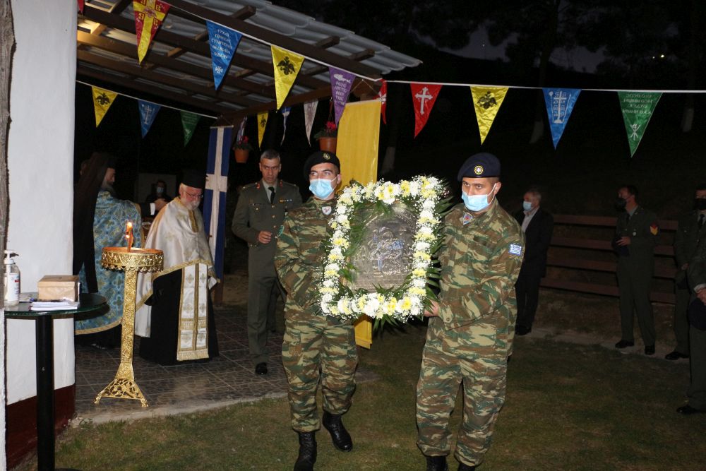 Τον Σεβασμιώτατο συνόδευε ο Ιερέας της 1ης Στρατιάς, Αρχιμανδρίτης π. Θεολόγος Σαμαράς, ενώ το αναλόγιο διακόνησαν αξιωματικοί του στρατοπέδου