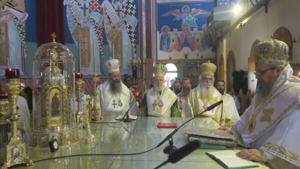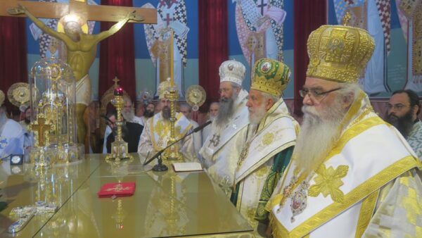 Εορτασθέντων των Ονομαστηρίων του Σεβασμιωτάτου Μητροπολίτου Λαρίσης και Τυρνάβου κ. Ιερωνύμου, στον Ιερό Μητροπολιτικό Ναό του Αγίου Αχιλλίου Λαρίσης τελέσθηκε Πολυαρχιερατική Θεία Λειτουργία, προεξέρχοντος του ιδίου, κατά φιλάδελφον επιμονήν των παλαιοτέρων Αρχιερέων, και συνιερουργούντων των Σεβασμιωτάτων Μητροπολιτών Καστορίας κ. Σεραφείμ, Δημητριάδος κ. Ιγνατίου, Σύρου κ. Δωροθέου Β΄, Ιλίου κ. Αθηναγόρου, ο οποίος ομίλησε με λόγο θεολογικά και εκκλησιολογικά τεκμηριωμένο για την Ανάληψη του Κυρίου, τον τιμώμενο Άγιο Ιερώνυμο και τον εορτάζοντα Μητροπολίτη Λαρίσης, Κίτρους κ. Γεωργίου, Θεσσαλιώτιδος κ. Τιμοθέου, Καρπενησίου κ. Γεωργίου και Σταγών κ. Θεοκλήτου, με τη συνευχητική συμμετοχή Κληρικών από την Ιερά Μητρόπολη Λαρίσης, την Ιερά Σύνοδο, την Ιερά Αρχιεπισκοπή Αθηνών και άλλες Μητροπόλεις, και την παρουσία του επανεκλεγέντος Περιφερειάρχου Θεσσαλίας, Βουλευτών, Πολιτευτών, υποψηφίων Βουλευτών, Εκπροσώπων του Στρατού, της Αεροπορίας και της Πυροσβεστικής Υπηρεσίας, συνεργατών του έργου της Ιεράς Μητροπόλεως Λαρίσης, μελών του Λαογραφικού Μουσείου Λαρίσης και πληθους πιστών.