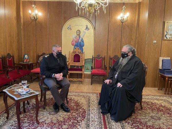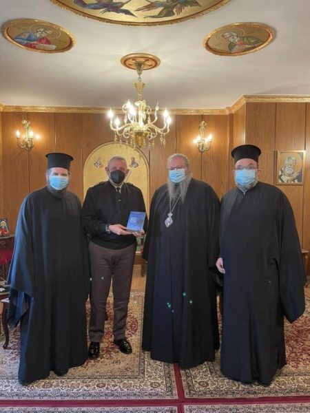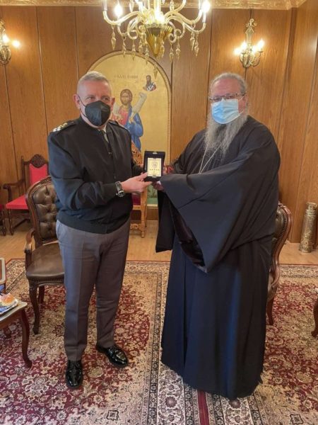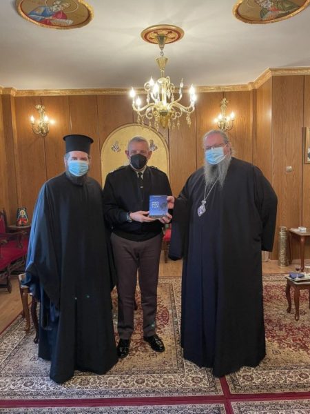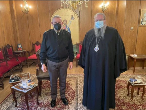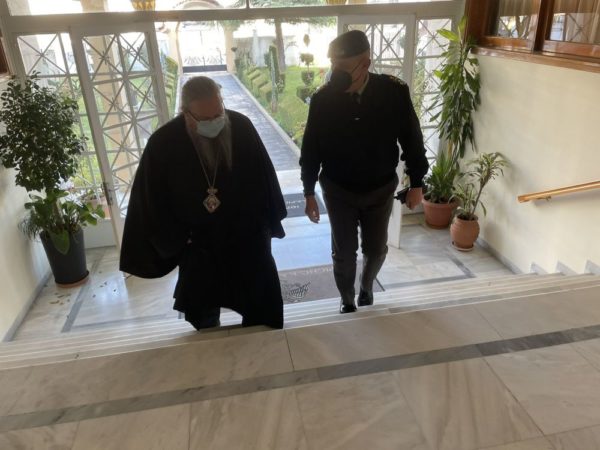 Ο Σεβασμιώτατος υποδέχθηκε εγκαρδίως τον κ. Αρχηγό, τηρώντας αμφότεροι τα ασφαλή μέτρα προφύλαξης που έχει συστήσει η Ελληνική Πολιτεία, και τον ευχαρίστησε για την αμέριστη συμπαράσταση και αγάπη που επιδεικνύει στην τοπική μας Εκκλησία.