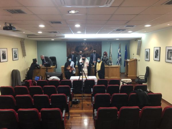Λόγω των υγειονομικών μέτρων που επικρατούν, η όλη συνεδρίαση του Επιμελητηρίου μεταδόθηκε διαδικτυακά, ενώ κατά την σύντομη προσλαλιά του, ο σεπτός Ποιμενάρχης ευχήθηκε τόσο στον κ. Πρόεδρο, όσο και σε όλα τα μέλη του Επιμελητηρίου να έχουν την ευλογία του Κυρίου μας στη ζωή τους και να ζωντανέψουν εκ νέου οι επιχειρήσεις τους.