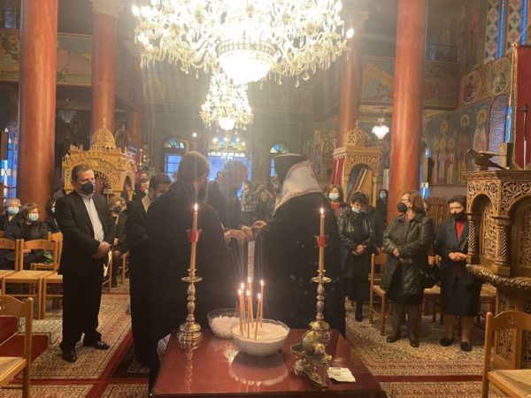 Στον Ιερό Ναό του Αγίου Γεωργίου Γόννων τέλεσε το Ιερό Μυστήριο του Ευχελαίου ο Σεβασμιώτατος Μητροπολίτης Λαρίσης και Τυρνάβου κ. Ιερώνυμος το απόγευμα της Πέμπτης Ε’ Εβδομάδος των Νηστειών, 7 Απριλίου 2022