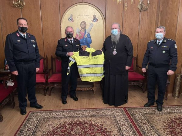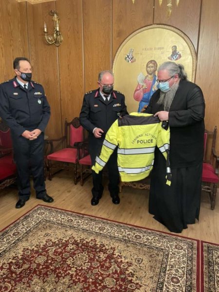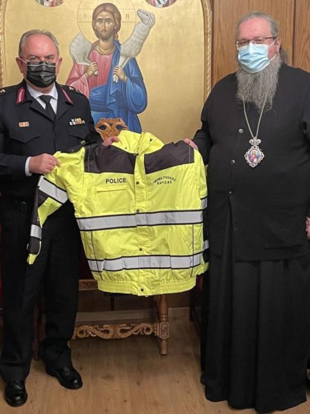 Από τη μεριά της η Ιερά Μητρόπολη Λαρίσης και Τυρνάβου βρήκε την ευκαιρία να προσφέρει 21 μπουφάν δριμέως ψύχους στο Τμήμα Τροχαίας Λάρισας, προκειμένου οι υπηρετούντες στο σώμα, ιδίως κατά τις νυχτερινές περιπολίες του χειμώνα, να είναι προφυλαγμένοι και επαρκώς εξοπλισμένοι.