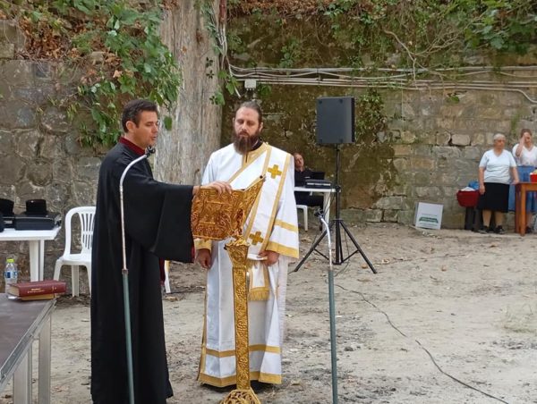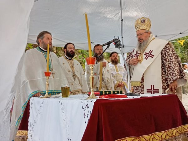 Βεβαίως η πρόσβαση στο Προσκύνημα ήταν αδύνατη λόγω της κατεστραμμένης πεζογέφυρας, όμως στην απέναντι όχθη δίπλα από την παλιά εθνική οδό Θεσσαλονίκης-Λάρισας τοποθετήθηκε ειδικά διαμορφωμένη εξέδρα με τραπέζι και σκέπαστρο, προκειμένου να τελεστεί η αναίμακτος μυσταγωγία.