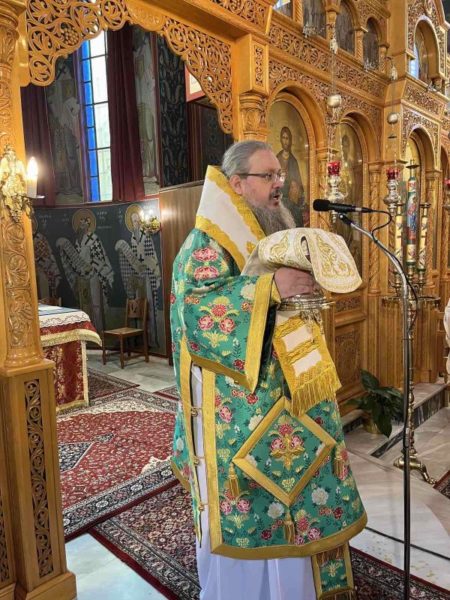 Στο κήρυγμά του ο Σεβασμιώτατος αναφέρθηκε στην ανάδειξη του ορθόδοξου δόγματος μέσα από την Πατερική ερμηνεία. Προ της απολύσεως ο Σεβασμιώτατος ευχήθηκε εορτίως στους ενορίτες.