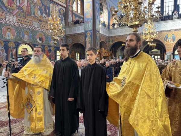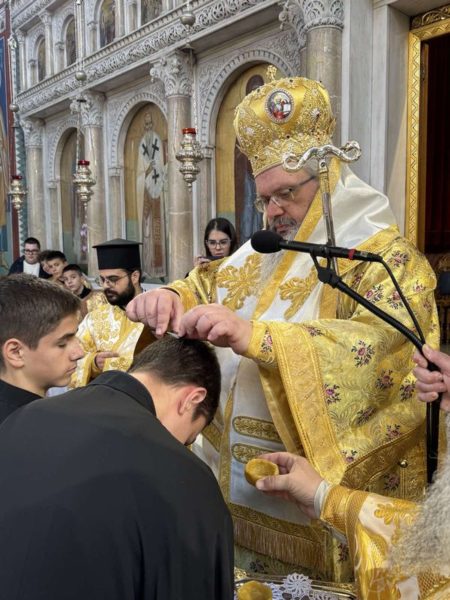 Προ του τέλος της Θείας Λειτουργίας, ο Σεβασμιώτατος χειροθέτησε αναγνώστες δυο μαθητές Λυκείου και Γυμνασίου οι οποίοι διακονούν την τοπική εκκλησία.