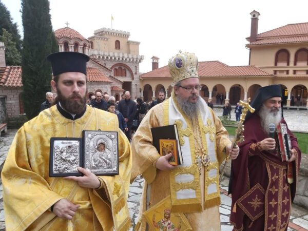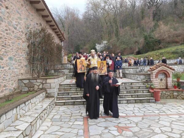 Ο Ηγούμενος της Ιεράς Μονής π. Πολύκαρπος και η αδελφότητα του υποδέχθηκαν τον σεπτό Ποιμενάρχη, ο οποίος στο κήρυγμα του, λαμβάνοντας αφορμή από τη μεγάλη σημερινή εορτή της Ορθοδοξίας, τόνισε ότι η Εκκλησία μας εορτάζει τη νίκη και το θρίαμβο επί των αιρετικών δοξασιών διαχρονικά, αλλά δεν πανηγυρίζει, διότι σκοπός και αποστολή της Εκκλησίας είναι η σωτηρία πάντων των ανθρώπων, ιδιαιτέρως δε όσων επλανήθησαν και είτε υπέπεσαν σε αίρεση είτε παρασύρθηκαν σε σχίσμα.