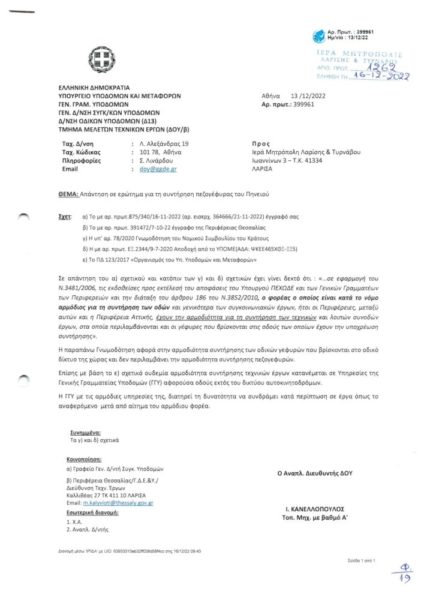 Αναλυτικά ολόκληρη η τοποθέτηση της Ιερά Μητροπόλεως “Περί Της Κρεμαστής Γέφυρας Αγίας Παρασκευής Τεμπών”: