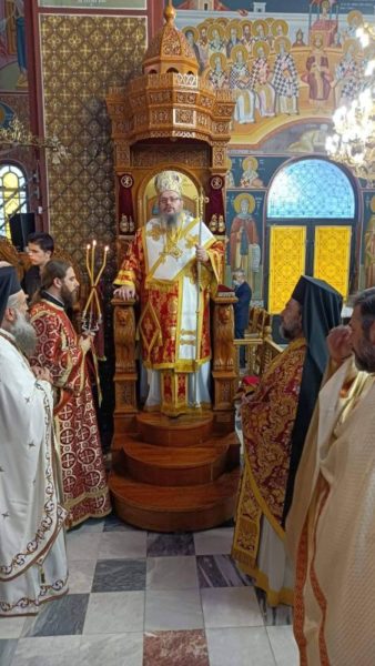 Ο Σεβασμιώτατος Μητροπολίτης Λαρίσης και Τυρνάβου κ. Ιερώνυμος χοροστάτησε στον Όρθρο και τέλεσε την Θεία Λειτουργία στον πανηγυρίζοντα Ιερό Ναό. Στο κήρυγμά του ο Ποιμενάρχης με αφορμή τον λόγο του Κυρίου «εμίσησάν με δωρεάν», αναφέρθηκε στον παραλογισμό των ανθρώπων να μισούν τον Θεό και τους ανθρώπους του.