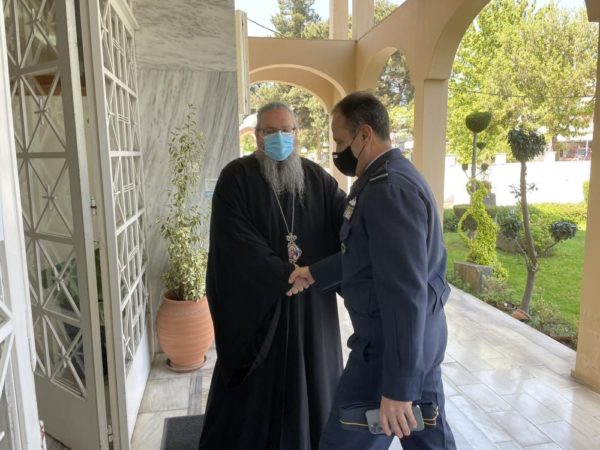 Ο Σεβασμιώτατος ευχαρίστησε τον κ. Αρχηγό για την τιμητική του επίσκεψη και ευχήθηκε τα δέοντα τόσο στον ίδιο, όσο και σε όλα τα στελέχη της Τακτικής Αεροπορίας, η οποία ως αεί πόλεμο όπλο είναι σε διαρκή ετοιμότητα και διασφαλίζει την κυριαρχία στο Αιγαίο.