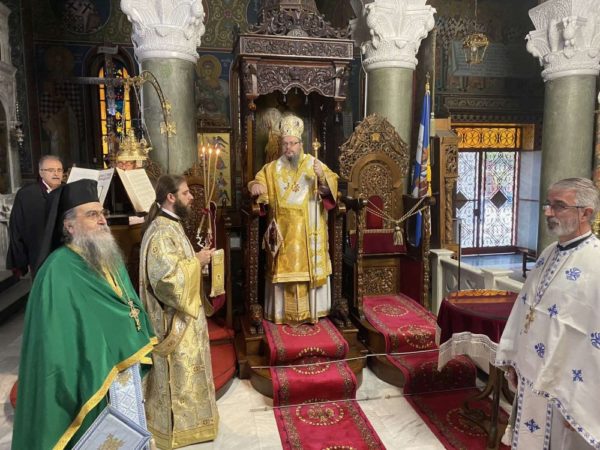 Στον Ιερό Ναό Αγίων Κωνσταντίνου και Ελένης Λαρίσης, κεκλεισμένων των θυρών, λειτούργησε ο Σεβασμιώτατος Μητροπολίτης Λαρίσης και Τυρνάβου κ. Ιερώνυμος, σήμερα, Κυριακή 15 Νοεμβρίου.