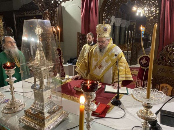 Στον Ιερό Ναό Αγίων Κωνσταντίνου και Ελένης Λαρίσης, κεκλεισμένων των θυρών, λειτούργησε ο Σεβασμιώτατος Μητροπολίτης Λαρίσης και Τυρνάβου κ. Ιερώνυμος, σήμερα, Κυριακή 15 Νοεμβρίου.