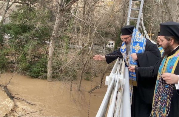 Ανήμερα της Μεγάλης Δεσποτικής Εορτής των Θεοφανείων και μετά το τέλος της Αρχιερατικής Θείας Λειτουργίας και του Μεγάλου Αγιασμού εντός του Μητροπολιτικού Ιερού Ναού Αγίου Αχιλλίου ο Σεβασμιώτατος Μητροπολίτης Λαρίσης και Τυρνάβου κ. Ιερώνυμος συνοδευόμενος υπό του Πανοσιολ. Αρχιμ. κ. Ιγνατίου Μουρτζανού, Πρωτοσυγκέλλου της Ιεράς Μητροπόλεώς μας, μετέβη στο κλειστό από 19 Νοεμβρίου 2019 Ιερό Προσκύνημα Αγίας Παρασκευής Τεμπών και επί της εκεί κρεμαστής γέφυρας τέλεσε τον Αγιασμό των Υδάτων του ποταμού Πηνειού.