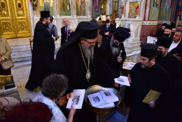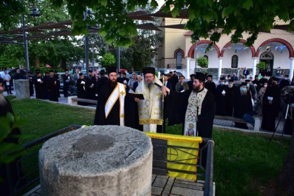 Ακολούθως, στον εξωτερικό περίγυρο της Εκκλησίας τελέστηκε επιμνημόσυνη δέηση για όλους όσοι Ιεράτευσαν ανά τους αιώνας στον Μητροπολιτικό Ναό και ακολούθησαν τα αποκαλυπτήρια της ειδικής αφιερωματικής πλάκας επάνω στον κίονα όπου στηρίζονταν η παλαιά Αγία Τράπεζα του Αγίου Αχιλλίου.