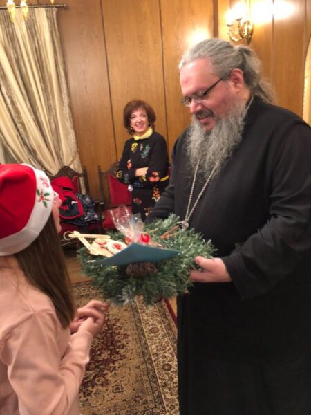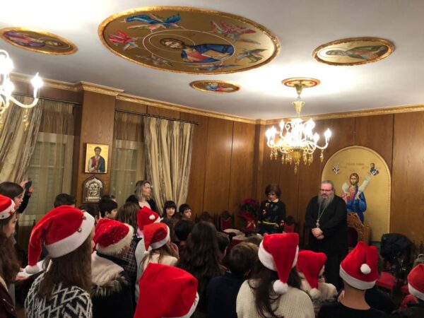 Ο Σεβασμιώτατος μίλησε εγκάρδια στα παιδιά, τους ευχήθηκε ευλογημένα Χριστούγεννα και τους προσέφερε μία εικόνα της Χριστού Γεννήσεως και γλυκίσματα.
