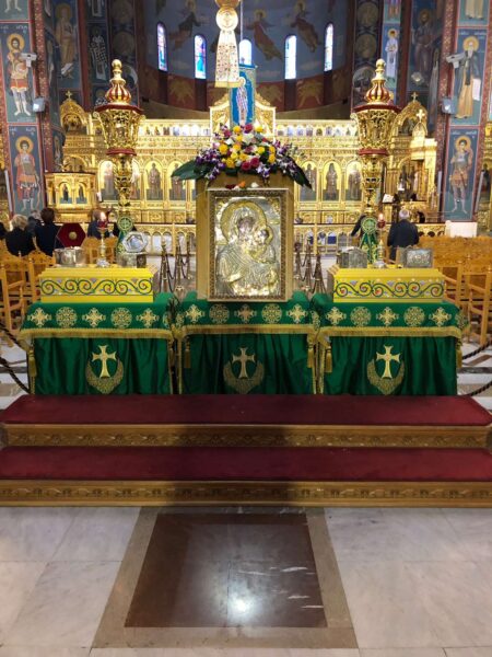 Της Θείας Λειτουργίας προεξήρχε ο Σεβασμιώτατος Μητροπολίτης Λαρίσης και Τυρνάβου κ. Ιερώνυμος συμπαραστούμενος από τους Ιερείς του Ναού.