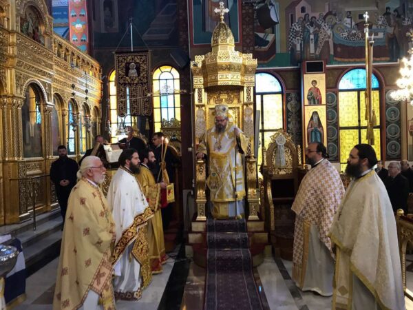 Πλήθος κόσμου προσήλθε για να προσκυνήσει και να λάβει την ευλογία των Αγίων, ενώ Ποιμενάρχης στο κήρυγμα του αναφέρθηκε αρχικά στην παραβολή του πλουσίου και του φτωχού Λαζάρου και στα διδάγματα που προκύπτουν από τη σοφή αυτή παραβολή του Κυρίου. Ο πτωχός Λάζαρος μετά το θάνατό του βρέθηκε στους κόλπους του Αβραάμ επειδή αγόγγυστα υπέμεινε τη φτώχεια στην επίγεια ζωή, ενώ ο πλούσιος της παραβολής στα σκοτάδια του Άδη, χωρίς καμιά ελπίδα πλέον σωτηρίας. Οι επιλογές του πλουσίου, κατά τη διάρκεια της επίγειας ζωής του, ήταν καταδικαστικές για την αιώνια κατοικία του. Γι’ αυτό πρέπει να είμαστε πολύ προσεκτικοί στον τρόπο με τον οποίο διάγουμε την ζωή μας για να έχουμε την τύχη του Λαζάρου κι όχι του πλουσίου. Ένα από τα μέσα για να το πετύχουμε αυτό, εκτός από την ενάρετη ζωή, είναι και η πίστη στον Τριαδικό Θεό. Μια πίστη όμως που θα είμαστε διατεθειμένοι να την ομολογήσουμε κάθε στιγμή της ζωής μας. Ο Χριστός, τόνισε ο Σεβασμιώτατος, περιμένει την ομολογία μας. Αν τον ομολογήσουμε μπροστά στους ανθρώπους, τότε κι εκείνος θα μας ομολογήσει μπροστά στον Πατέρα Του· αν τον αρνηθούμε μπροστά στους ανθρώπους, τότε κι αυτός θα μας αρνηθεί μπροστά στον Πατέρα Του. Παράδειγμα ανθρώπων που ομολόγησαν τον Κύριο είναι οι εορταζόμενοι εν Λαρίση άγιοι, των οποίων τα λείψανα έχουν εκτεθεί προς προσκύνηση και αγιασμό των πιστών και τα οποία μας θυμίζουν ότι υπάρχει σωτηρία και για το σώμα μας και ότι δεν σώζεται μόνο η ψυχή, αλλά και το σώμα. Εάν θέλουμε να κερδίσουμε την αιώνια ζωή, οφείλουμε να σεβόμαστε το σώμα, το κατοικητήριο του Αγίου Πνεύματος και να είμαστε προσεκτικοί στη ζωή μας, μιμούμενοι τη βιοτή απάντων των εν Λαρίση αγίων.