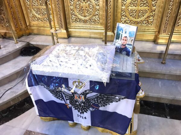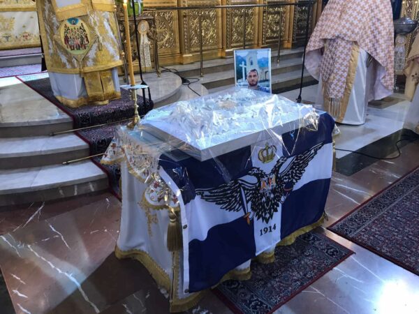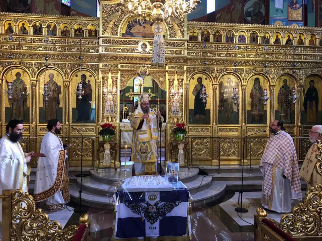 Μετά την απόλυση της ευχαριστιακής συνάξεως, ο κ. Ιερώνυμος τέλεσε το μνημόσυνο του ήρωος της Βορείου Ηπείρου, μακαριστού Κωνσταντίνου Κατσίφα και τόνισε την αξία ενός τέτοιου μαρτυρικού θανάτου για την αγάπη προς την πατρίδα.