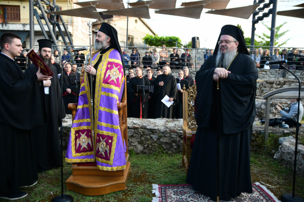 Τελέστηκε το απόγευμα της Παρασκευής 12 Μαϊου ο πανηγυρικός υπαίθριος προεόρτιος Αρχιερατικός Εσπερινός στην αρχαία Βασιλική του Αγίου Αχιλλίου, στη Λάρισα, χοροστατούντος του Αρχιεπισκόπου Αυστραλίας κ. Μακαρίου και συγχοροστατούντος του Μητροπολίτου Λαρίσης και Τυρνάβου κ. Ιερωνύμου.
