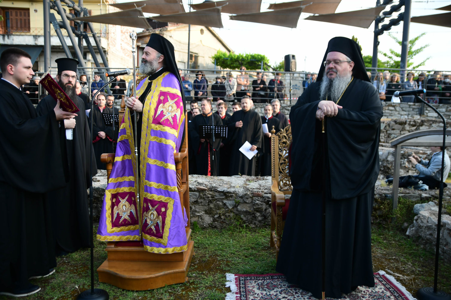 Πλήθος πιστών παρακολούθησε τον πανηγυρικό εσπερινό στο Λόφο του Φρουρίου ενώ πραγματοποιήθηκε λιτανευτική πομπή μέχρι τον Μητροπολιτικό Ναό και άνοιγμα της Λάρνακας των Ιερών του Λειψάνων.